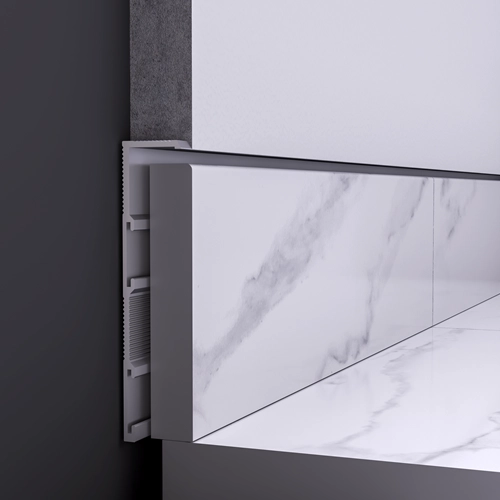 Das Modell Z ist ein Unterputzprofil speziell für den Trockenbau für Holz-, Fliesen-, Teppich- und Aluminiumsockelleisten.